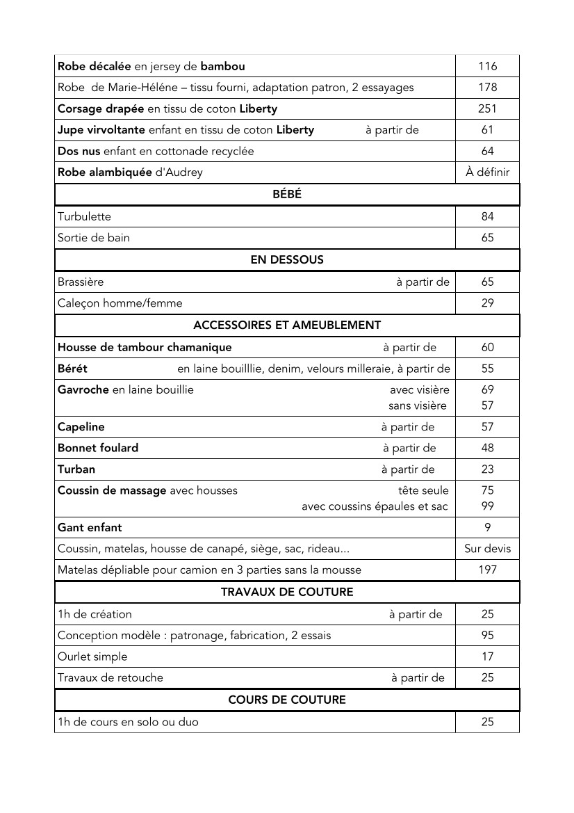 Tarifs