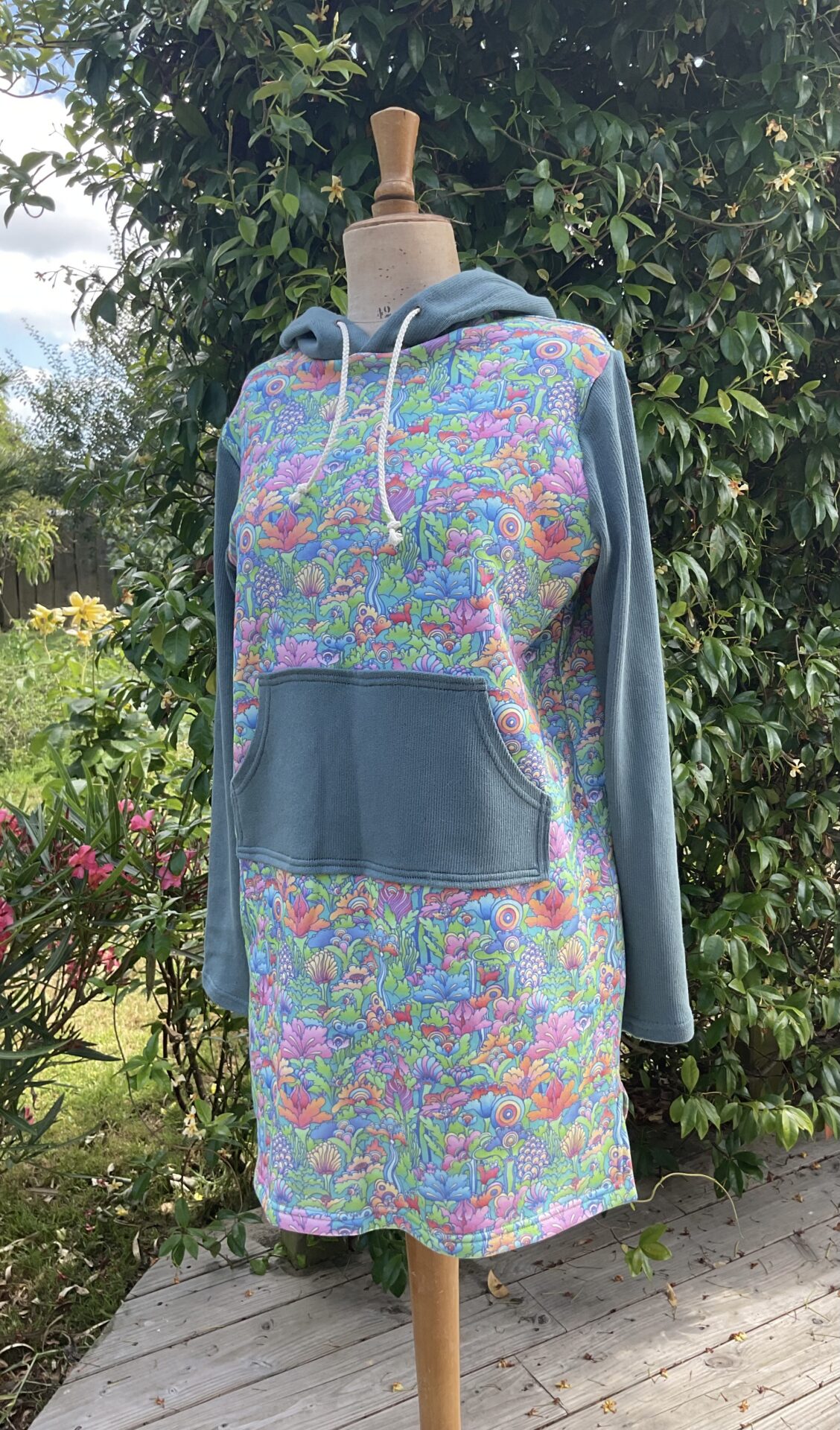 En jersey d’éponge Oeko-Tex, 2 poches et bouton en noix de coco pour les capuches lutin – 67€ 50€
